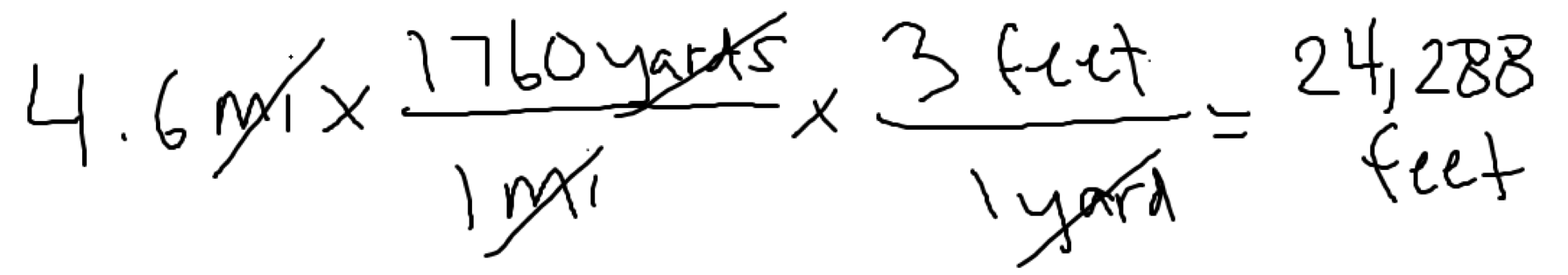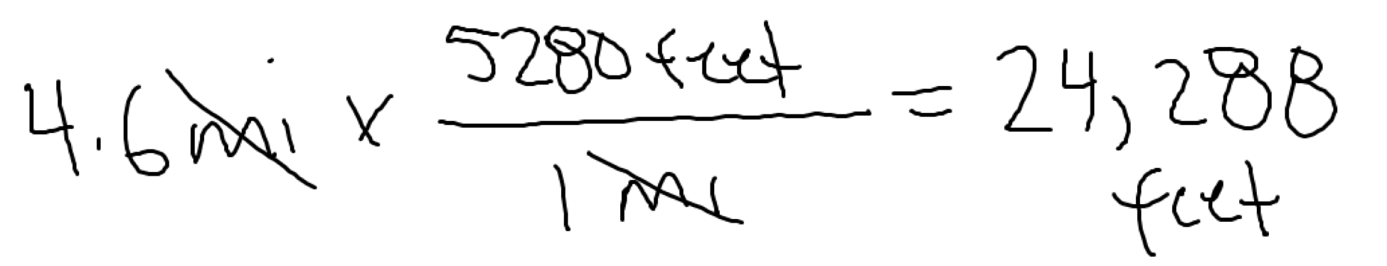 Which conversion factor would you start with? The one that has miles! How should the fraction be written? With miles in the denominator!